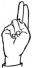 На ћирилици написано МАГДАЛЕНА ВЕЛИМИРОВ састоји се из 18 слова [?]. Исписано ћириличном једноручном азбуком за глувонеме: